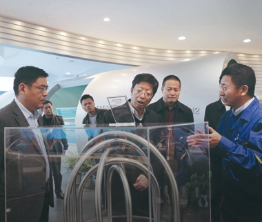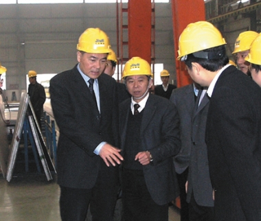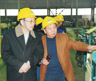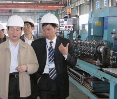 2007年2月,時(shí)任浙江省原副省長金德水(左二)視察久立生產(chǎn)現(xiàn)場